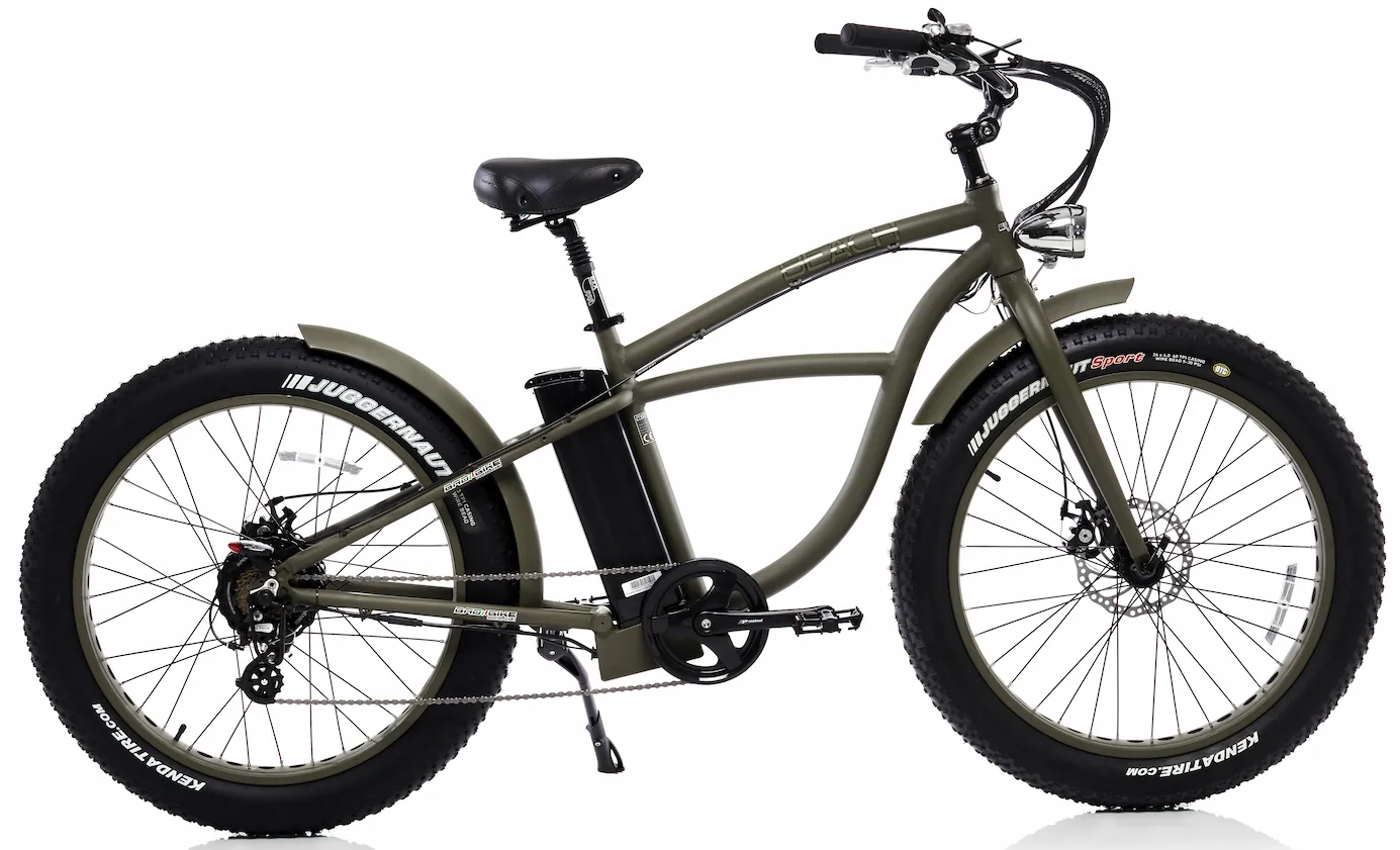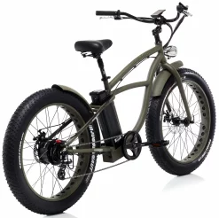 Le Fat Bike Electrique Retro Beach Cruiser existe en 4 couleurs différentes (noir, vert militaire, aluminium/rouge, aluminium/noir) et est disponible en version moteur 250W et 500W. Avez-vous des animaux de compagnie ? Découvrez ensuite le cruiser qui dispose d’un side-car dans lequel vous pouvez transporter vos animaux domestiques ou mettre tout votre matériel de plage lorsque vous vous rendez à la plage. Vous avez besoin de plus de capacité de charge ? Pensez à ajouter un porte-bagages arrière optionnel spécialement conçu pour les gros pneus de ce vélo.