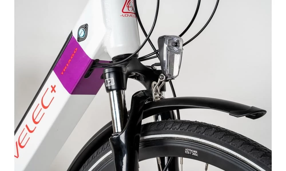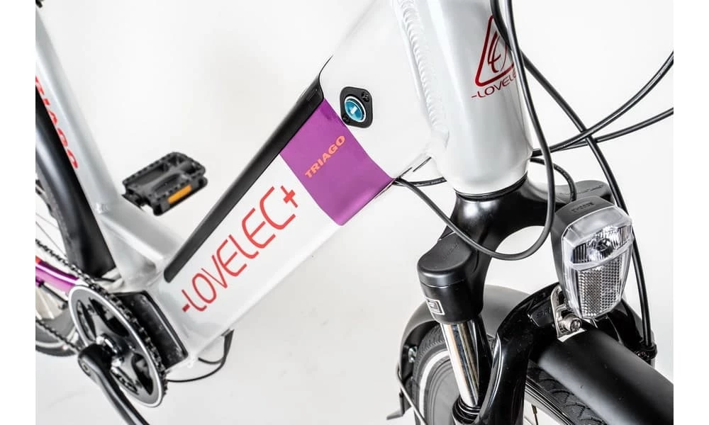 VTC Electrique Femme Moteur Pedalier 28 Pouces Lovelec Triago Blanc 18″ 16ah