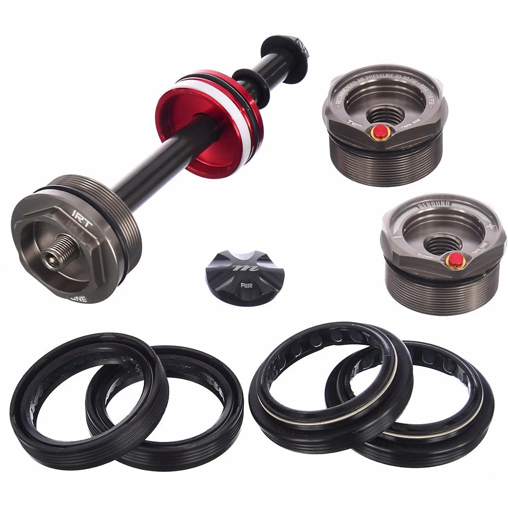During high-demand riding, the lubrication can create vapor, which increases the pressure of your fork and results in a firmer feel. Using our TSR technology, this kit allows you to relieve that pressure to reduce resistance and improve the stroke of the fork. (TSR is push button on Dorado Pro.) IRT Infinite Rate Tuning allows independent mid stroke and end stroke bottom-out control. IRT reduces the main air-spring pressure, allowing for a more supple stroke while maintaining end-stroke independently. Wrap it all up with a set of Evil Genius 2 Seals.