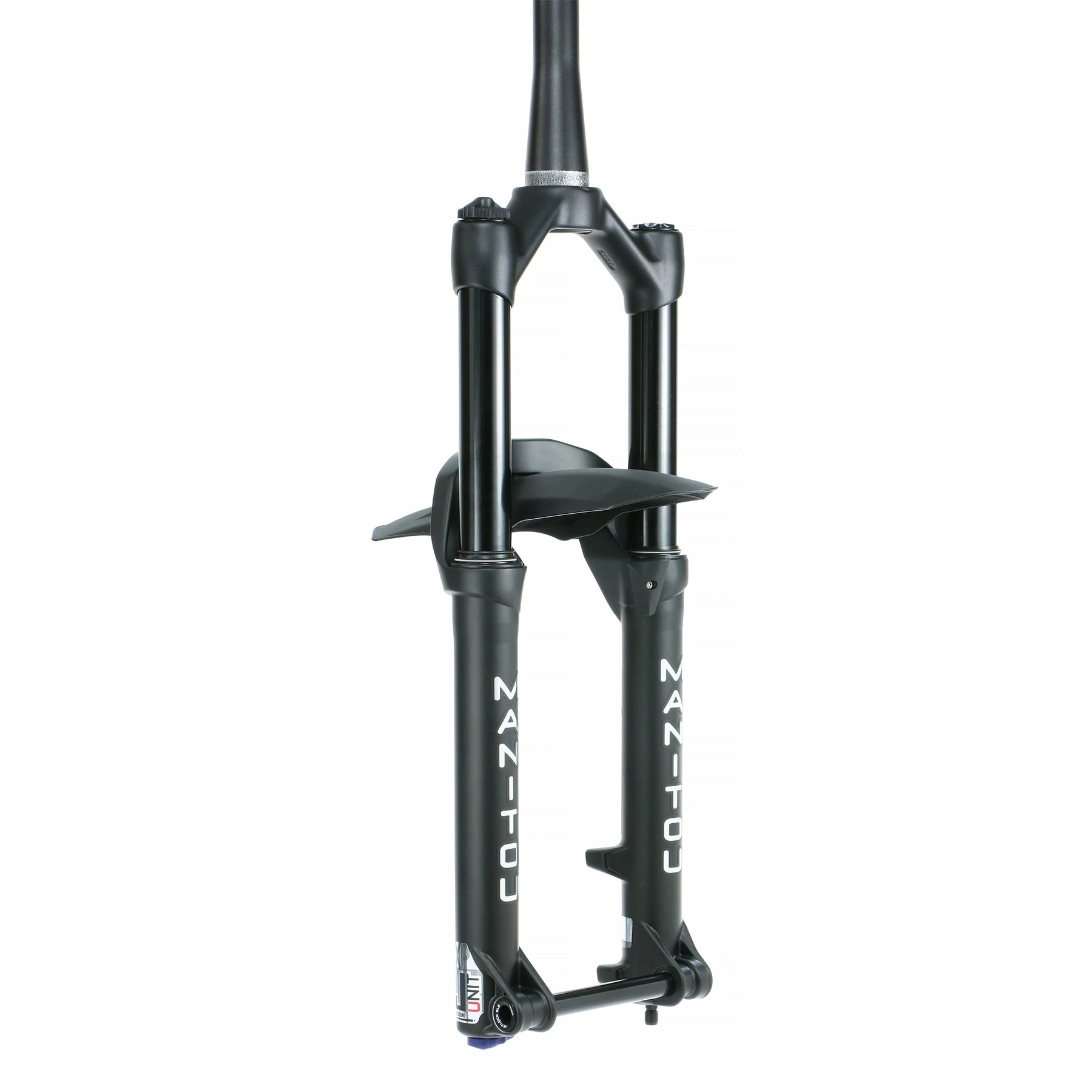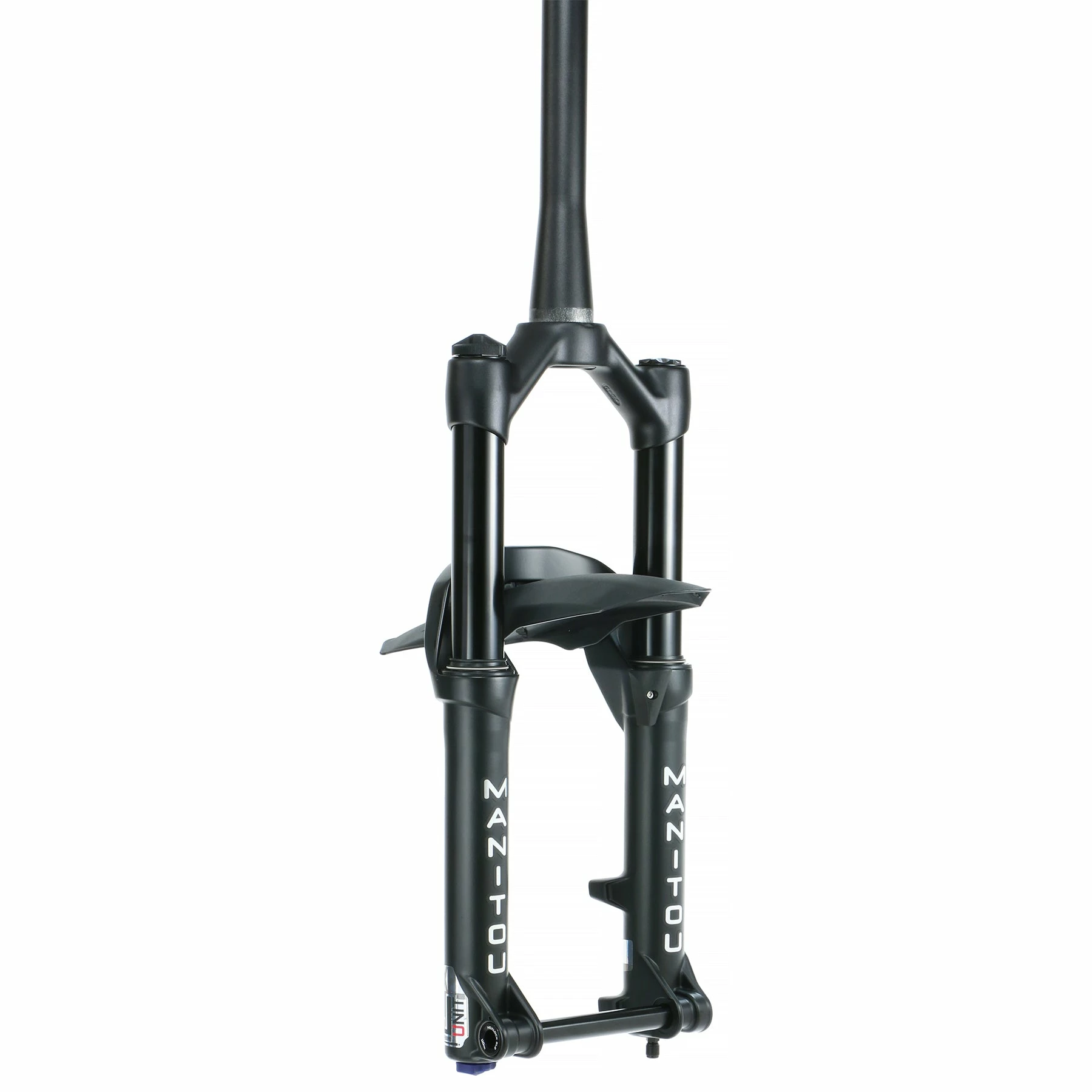 Manitou JUNIT Expert, a youth-sized 20” and 24” suspension fork. Finally, young riders have the option for either a 20” or 24” wheel to enjoy the lightweight, high-quality chassis. JUNIT Expert features a 1.5” tapered alloy steerer tube and a forged hollow crown. Thirty-two millimeter, 6000 series black anodized stanchions are completed with Manitou’s signature Reverse Arch. Lightweight riders benefit from the easily adjustable Expert Air spring system, adjustable rebound, and our proven ABS+ damper.