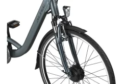 Ce vélo d’entrée de gamme pour femmes est disponible en trois couleurs, noir, gris et bleu. Les jantes en aluminium à double paroi sont un plus dans la finition du vélo. Les feux avant et arrière, qui peuvent être allumés en appuyant sur le bouton plus, vous permettent de rentrer chez vous en toute sécurité le soir.