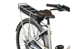 Ce vélo est disponible en deux couleurs différentes, noir et aluminium. Vous pouvez également acheter un joli siège pour enfant avec ce vélo. Grâce aux feux avant et arrière, qui peuvent être allumés en appuyant sur le bouton « + », vous pouvez rentrer chez vous en toute sécurité le soir.