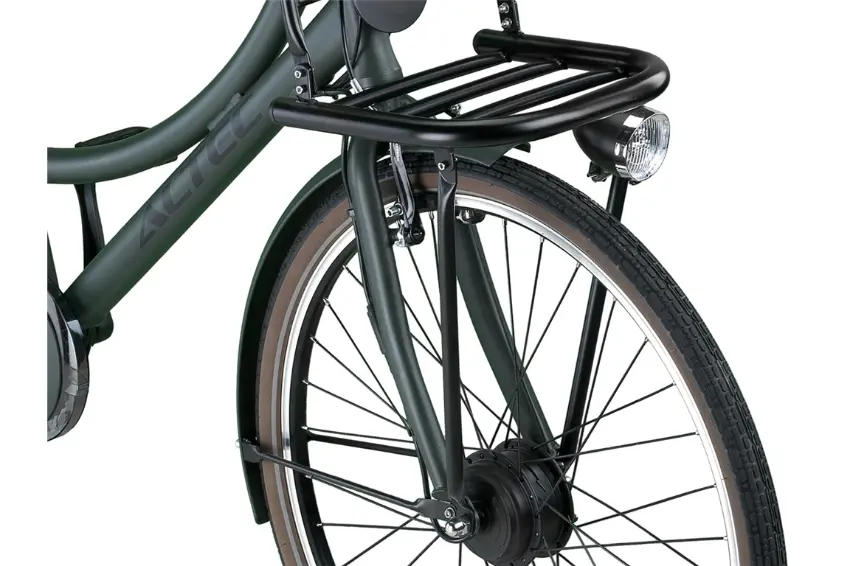 Ce vélo est disponible en trois couleurs différentes : noir, vert et bleu. Il est également doté d’une double béquille pour une stabilité maximale à l’arrêt. Le porte-bagages avant est également en aluminium, ce qui le rend inoxydable et super léger !