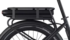La batterie étant montée sur le porte-bagages arrière, elle ne vous gênera pas et sera facilement accessible pour la recharger. La batterie montée à l’arrière en fait également une option plus abordable.