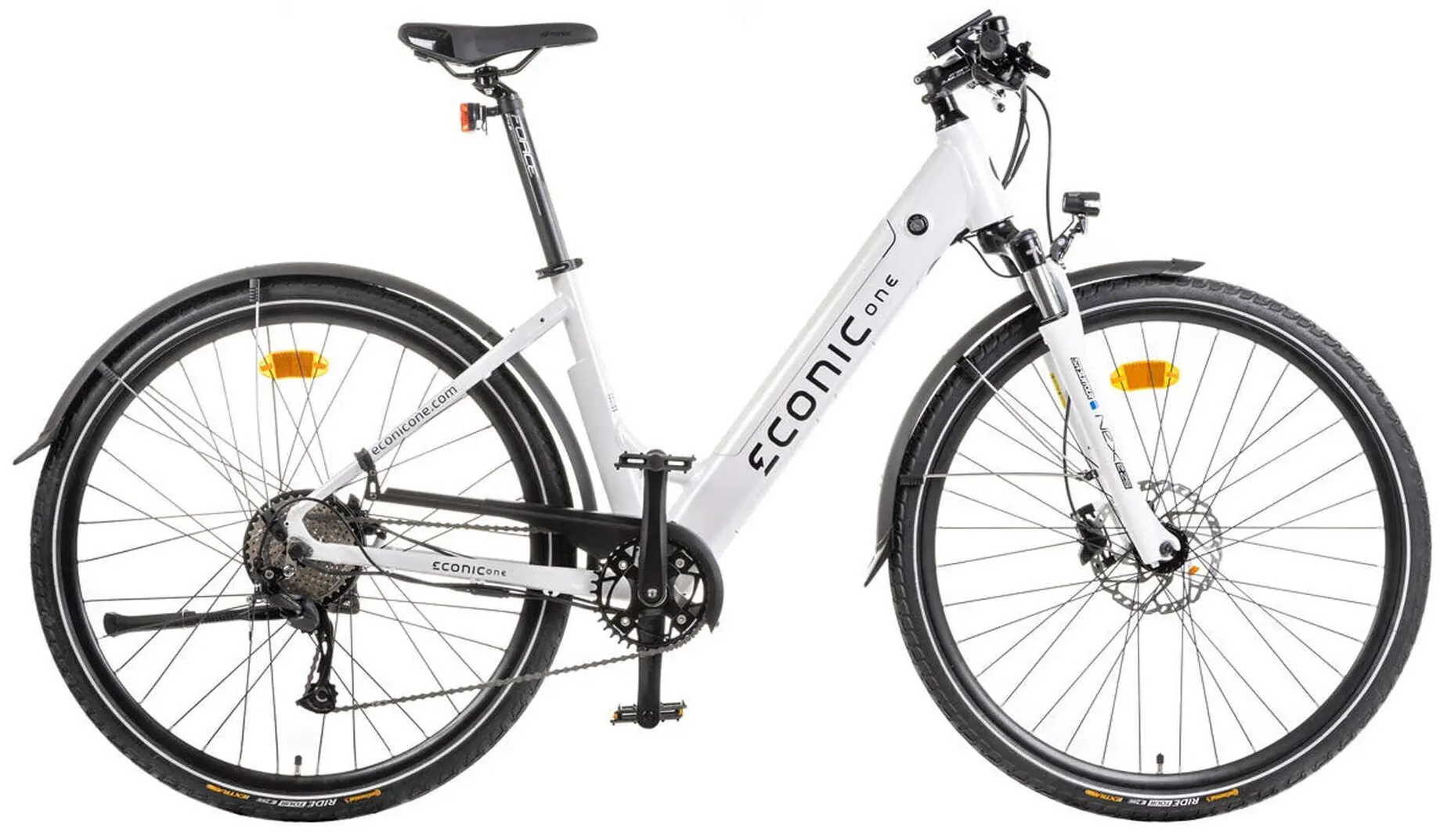 Le VTT Électrique Femme Econic One Urban Comfort vous fera attendre avec impatience votre trajet du lundi matin au travail. Assemblé à la main à partir de composants de qualité et monté pour votre plaisir. Avec une impressionnante autonomie de 100 km, vous pourrez utiliser ce vélo pendant toute la semaine pour vos trajets domicile-travail, et même quelques sentiers légers le week-end avant de le garer pour une recharge rapide le dimanche. Conçu pour les navetteurs urbains actifs, ce vélo extrêmement confortable est doté d’une suspension avant de 63 mm intégrée pour affronter tous les obstacles urbains et même certains terrains hors route.